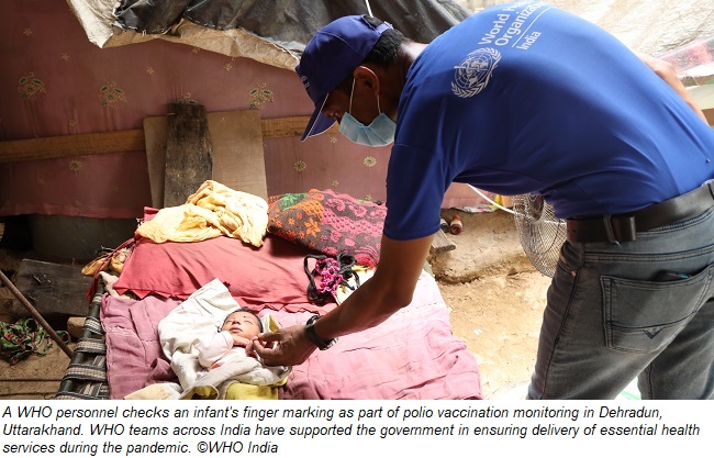 “The Government of India (GoI) in partnership with WHO, UNICEF and other agencies began leveraging the knowledge and infrastructure built around polio eradication to step-up routine immunization and priority public health programmes. More recently, the WHO-NPSP network (now) with a field presence of nearly 2600 personnel comprising medical officers and field monitors, has been actively involved in working with the government to respond to COVID-19 pandemic,” says Dr Roderico H. Ofrin, WHO Representative to India.