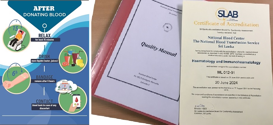 IEC material produced by NBTS on post-donation of blood. | The Quality Manual of the NBTS and the Certificate of Accreditation.