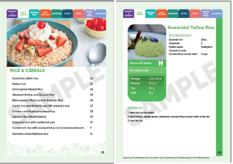 The fruit of these multi-pronged efforts is a handy and colourful recipe book that can be kept in the kitchen for easy reference.