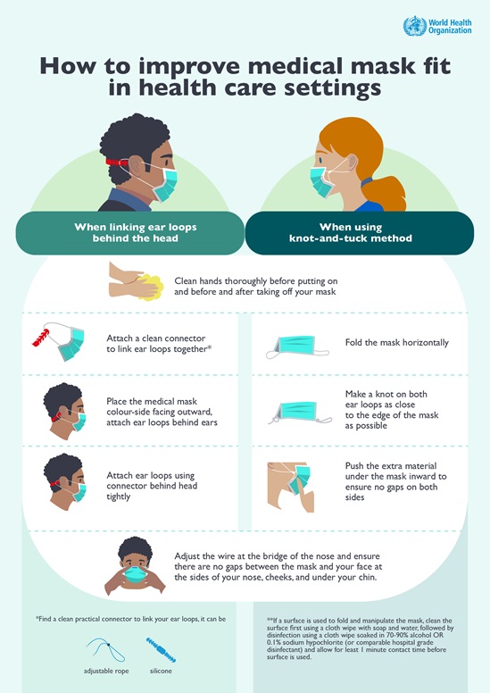 - Implement universal masking policies in healthcare facilities in areas where COVID-19 is spreading, including in common areas where health workers interact