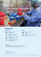 This snapshot summarizes the Syria’s progress in polio transition. It outlines the government’s vision to keep Syria polio-free and to sustain...
